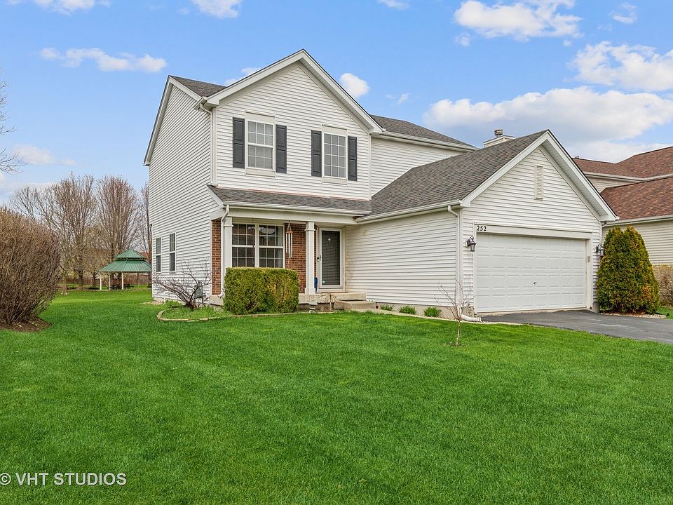 This home is inviting and attractive with an entryway that opens to the formal/flex living/sitting room. Home has a wonderful floor plan, that features 4 bedrooms, 2 full, 2 half baths with a finished basement, and lots of storage. Spacious eat in area that opens to the family room, and access to the large deck, that backs up to an open area and park. Wood laminate flooring throughout the family room & kitchen with maple cabinets. Master bedroom has vaulted ceilings, walk in closet. Master bath with soaker tub and separate shower. The community includes parks, walking path/bike trails for your enjoyment. Corner lot. A wonderful place to call home!