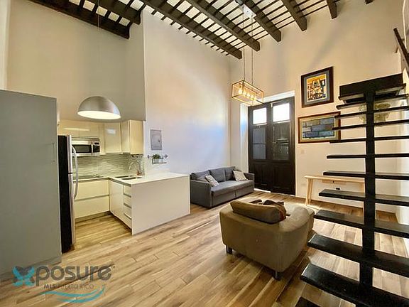 Live in the heart of Old San Juan, Historic District in Fortaleza street. Next to an abundance of shops, historic places, museums, open air cafes, restaurants, colorful homes, tree-shaded plazas, and the city's old beauty and architectural charm. This beautiful apartment consists of 1 bedroom, convertible to two - 1 bathroom - Mezzanine - High ceilings - Balcony - Building has elevator - Furnished and equipped - Short-term rentals allowed - 734 sqft..