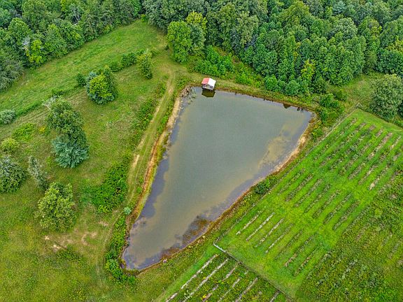 The cabin features warm, rustic character throughout, while the surrounding land is set up for your country lifestyle. A fenced yard is ready for livestock, while the stocked pond invites you to fish or simply enjoy peaceful afternoons by the water. Fruit trees dot the property, adding seasonal harvests right outside your door.