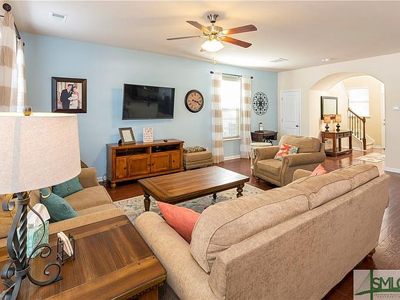 Remarkable Pooler Home in excellent condition with the right upgrades! Curb appeal galore with stone and shake style siding, well-maintained landscaping and covered front porch. This home has all the extras you could ask for to include; hardwood flooring throughout the main level (tile in kitchen), granite counters and SS appliances in kitchen, breakfast room, walk-in pantry and sun room/den. Main floor also features an open floor plan with a huge living room open to the kitchen & dining room. Upstairs hosts a large master bedroom with large walk-in closet and double vanity master bath with separate shower & garden tub. Two of the other three large bedrooms have walk-in closets, laundry area is conveniently located next to the bedrooms. The back yard is fenced and backs up to wooded buffer and a berm for privacy, great space with two patios and a built-in stone fire pit. All in the gated, amenity filled The Farm at Morgan Lakes, with 3 pools, fitness center, playground, and lake