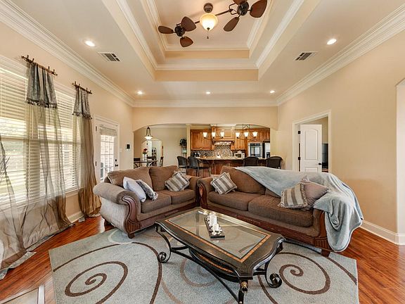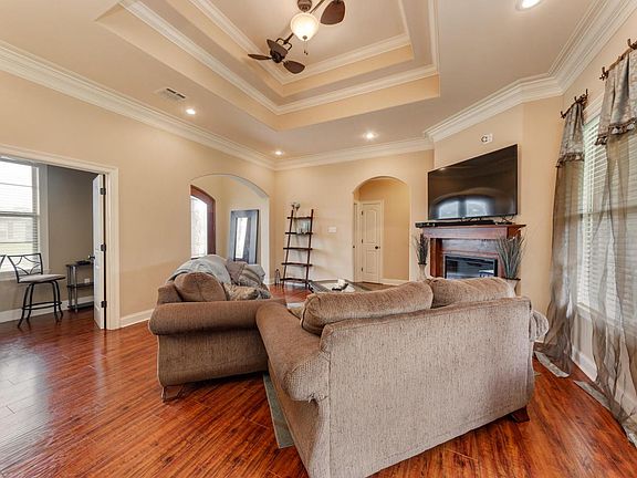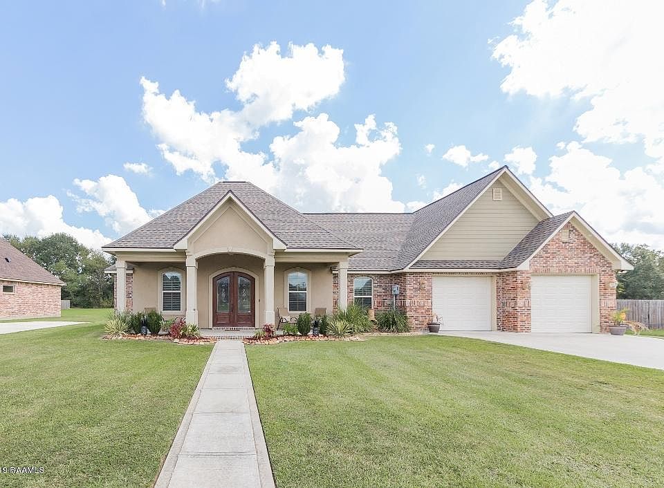 Youre looking for a property with elbow room between neighbors, custom construction and an open concept. This is it! Sitting on .5 acres this custom built three bedroom, two bathroom home (plus office!) with no carpet and quick access into I49 is ready for new owners. As you approach the home youll notice the immaculate curb appeal complete with landscaping and a southern style front porch for sipping morning coffee. Upon entry into the home, you are greeted with a foyer area that opens to the living room. The focal point becomes the fireplace and natural light that streams into the home. Off of the living room area is an office that closes off for privacy. Kitchen opens into the living room with a breakfast/dining area.Kitchen features a huge eat-in bar area, stainless appliances, double oven, granite countertops and room to move about while preparing your meals. On one side of the split floor plan house is the master bedroom area with en suite master bath. Master bedroom features trayed ceiling and room for a California king sized furniture. Master bathroom is spacious with separate dual vanities, large soaker tub, separate tile shower, private water closet and two very large walk in closets. Across the home are two decent sized secondary bedrooms that share a bathroom. The backyard area has a covered patio and the green space is very large. Bonus: no afternoon sun while you enjoy your patio space! The garage has been built deeper and wider than usual allowing you to park large trucks/SUVs and a lawnmower between the two vehicles. Dont miss out on the custom details: extra large crown molding, trayed ceilings for more height in the living room, archways, exterior soffit lighting, and arched windows along front of home, custom drapes. Sellers are willing to leave behind the refrigerator and a 55 Samsung TV! Property qualifies for 100% Rural Development financing (no down payment). Home has never experienced any flooding.