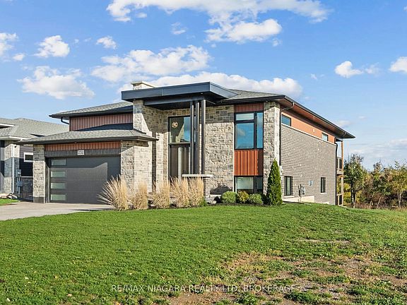 Upscale waterfront raised bungalow featuring 2+2 bedrooms and 2+2 bathrooms, with an open-concept design and a full walkout lower level offering over 3,600 sq. ft. of luxury living space. Nestled along the tranquil Welland River, the main level showcases a custom kitchen with a quartz island and a stunning great room with a wall-mounted fireplace, flowing seamlessly to a covered deck overlooking the extraordinary riverbend view. Retreat to the spa-inspired ensuite with a spacious walk-in tile and glass shower and freestanding soaker tub. The lower level offers a self-contained living area with a full kitchen, two bedrooms, a 3 pce. and a large recreation space with a private walkout to the waterfront patio. Boasting elegant finishes throughout, this home combines modern style with a serene waterfront setting perfect for two family living. The outdoor patio and the deck measure 21'-8" x 11'-3".