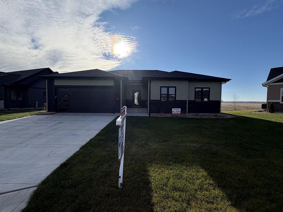 BRAND NEW Ranch Home! This Home has 3 Bedrooms, 2.5 Baths, 1st Floor Laundry + Oversized 2 Car Insulated & Drywalled Garage! HUGE Kitchen w/Quartz Countertops, Work Island, Walk-in Pantry, Quartz Backsplash, Stainless Steel Appliances + Dinette Area that opens to the Great Room w/Vaulted Ceilings & Fireplace! Beautiful LVP Flooring Throughout Kitchen & Great Room! Master Suite w/Tray Ceiling, Large Walk-in Closet + Full Bath w/Walk-in Shower! White Trim Throughout! The Exposed Lower Level is Ready for Future Finishing of a Family Room, 4th Bedroom + Full Bath! Drink your morning coffee in your private backyard under your Covered Porch!