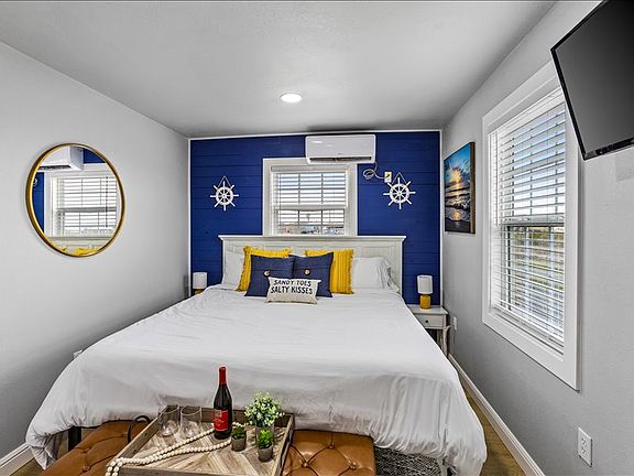 Inside, you'll find a beautifully decorated beach-themed living room, perfect for creating memories with loved ones while playing card games. This inviting beach home boasts two cozy bedrooms and one well-appointed bathroom, comfortably accommodating up to five guests. Sleeping options include a luxurious king-size bed, a charming queen-size bed, and a versatile twin XL bed.
