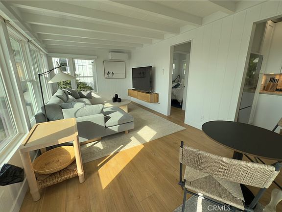 Brand new remodeled Cottage/Back House with panoramic Ocean, Catalina, and City Light views in North Laguna, just above Boat Canyon. This charmer is turn-key, was taken down to the studs and rebuilt with all high-end materials, and is just 2 blocks from the beach (Divers Cove, Heisler Park, and Fisherman's Cove). Enter from the back (off alleyway or along private path along East side of 252 Grandview to back) to an open deck surrounded by lemon trees. A wall of windows in the Living Room offers sweeping Ocean Views. High-beamed ceilings and new wood floors create a bright, beachy chic escape with tasteful decor and a large flat-screen TV. The remodeled kitchen has top-of-the-line appliances and is completely equipped with dishware, cookware, coffee machine, etc. for a comfortable stay. Full-sized stackable laundry in Hallway closet, new bathroom with step-in shower and a primary bedroom with a King-sized bed, flat-screen TV and walk-in closet. A/C and Instant Hot Water Heater. There is an outdoor shower for washing off the sand after a relaxing day at the beach. Restaurants and shopping are just steps away at Boat Canyon (Pavillions, ReUnion Kitchen, Grazie Pizza, Jan's Health Bar, Asada Tacos, and Black Dot Coffee) along with Gallery Row and all Village shops. Inquire about availability.