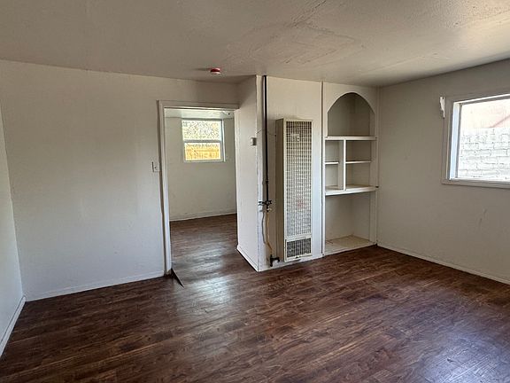 The home is all tile with a kitchen dinning combo. In the center of the home is your living room with built in shelving. Each bedroom is of large size for all furniture needs. There is a stand up shower in the bathroom.