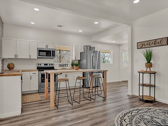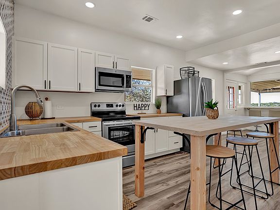 Start your New Year off right in this welcoming farmhouse chic home! Recently renovated, it features an open floor plan, views galore, spacious wrap-around deck and multiple outdoor entertaining areas. New stainless appliances and stackable washer and dryer complement the kitchen, while the new HVAC, plumbing and wiring supply an extra level of confidence and comfort. A large two-car garage provides excellent storage in addition to a large under home storage area. Situated on 1 hilltop acre, just outside the city limits, you can get away from it all and still be minutes to town.