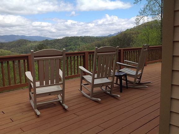 Relax and Enjoy. Amazing views of the Smokey Mountains and the Blue Ridge Parkway, from spacious upper and lower decks. This beautiful family/vacation home boasts upper and lower living rooms with gorgeous stone wood burning fireplaces in each. The kitchen is sure to please, with a breakfast bar that seats 6+, plenty of cabinets and counter space for everyone, open to dining room that seats 8 to 10. Master bedroom (the Barn) is massive with master bathroom, walk in shower and separate jetted tub. Down stairs bedroom is also very accommodating with its own full bathroom and walk in closet. Upper loft gives you the feel of being in the tree tops, kiddos love it!!. Inside laundry is very spacious with lots of extra storage. New metal roof in 2020. Enjoy the rocking chairs on the covered deck on front of home. Home is located in a very quiet neighborhood, very convenient to shopping and many outdoor activities and adventures. VRBO # 789846 / Please visit and see our reviews.
