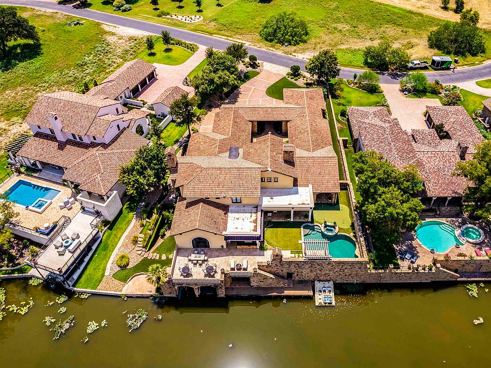 Welcome to an entertainer’s dream lakehouse! This spectacular 3 story waterfront property is located inside the member-owned prestigious Escondido Golf and Lake Club on Lake LBJ. Custom built, this home offers a wide open floor plan, thoughtfully designed allowing plenty of abundant natural light to indoor spaces through the large seamless sliding glass doors which allows outdoor access to the pool, putting green, huge covered porch with outdoor kitchen, and large patio with seating areas over looking the lake. Several vast living rooms are connected offering numerous areas to entertain family and guests. Chef’s delight in this luxurious high end kitchen with 2 islands. Main level master bedroom has dual vanities plus large walk-in closet. Two bedrooms are upstairs, each with their own en-suite bathrooms. Ride the elevator down to the lower level, which encompasses a grand game room with both a pool table and shuffleboard table, adjacent to a seated bar area, and an impressive temperature controlled wine room. Walk outdoors to the private boat dock that can house your lake toys! Your guests can enjoy one of two casitas, both located off the private entry courtyard. For a turn-key experience, this home is being offered fully furnished including all outdoor patio furniture, few exceptions are artwork, golf carts, boat, jet-skis and wine collection. Club membership comes with home purchase. This spectacular luxury dream home offers so much more, schedule your private tour today!