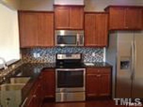 Well maintained end unit townhouse in Brier Creek. Home has 2 car garage and gourmet kitchen with stainless steel appliances. Refrigerator, washer and dryer are included. Hardwood on the entire 1st floor. Covered porch back to the wooded backyard. Specious master suite with double vanity and large walk-in closet. Close to RTP, RDU, 70, 540, 40, UNC, Duke and NCSU. Walking distance to Brier Creek shopping center. Community pool and park.