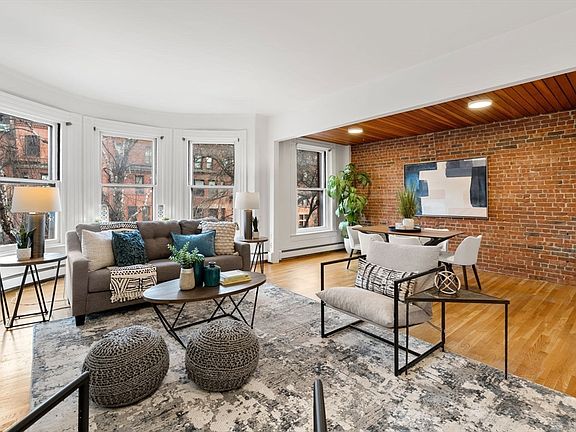 This 2-bedroom, 2-bath condo on highly sought-after Marlborough St between Exeter & Fairfield is a true gem! The property, available for the first time in 30 years, boasts a graciously proportioned floor plan with wall of windows that affords beautiful views of the charming Back Bay streetscape. An expansive, sun-lit living/dining-living room is perfect for entertaining & features a focal fireplace wall and a built-in bar. An adjacent, efficient kitchen offers endless possibilities to customize and create your ideal living space. Primary en-suite bedroom is a serene retreat; features a striking hearth, a renovated bathroom with double vanities and a walk-in shower. A private deck – perfect for enjoying morning coffee – a second bedroom, renovated guest bath, in-unit laundry hookup and direct access parking spot complete the property. All set within a well-managed, handsome 1890s brownstone close to Newbury St, the Public Garden, Esplanade and everything historic Back Bay offers..
