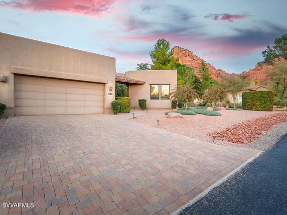 GORGEOUS Custom Home. Open and bright floorplan. Stunning Red Rock views! 3 Beds/ 2.5 baths. Coveted Chapel Neighborhood. Gourmet kitchen with Granite, SS Appliances, Walk-in Pantry, Island w/ area for breakfast. Formal Dining area, opening onto covered paver patio. Living room w/ gas fireplace and stunning wood beams. Huge windows let in natural light and Breathtaking Red Rock views. $20k Anderson windows in Living room, with Lifetime warranty. Split BR set up. Luxurious Primary Bedroom and Bathroom, with extra large walk-in closet. Rich creamy walls, stone tile floors and solid wood cabinets and doors. 9 Ft ceilings. Exterior painted 2023. EZ care desert landscape. Paver driveway. Surrounded by Sedona's finest hiking and biking trails. NO HOA. Nothing more to do but move in.