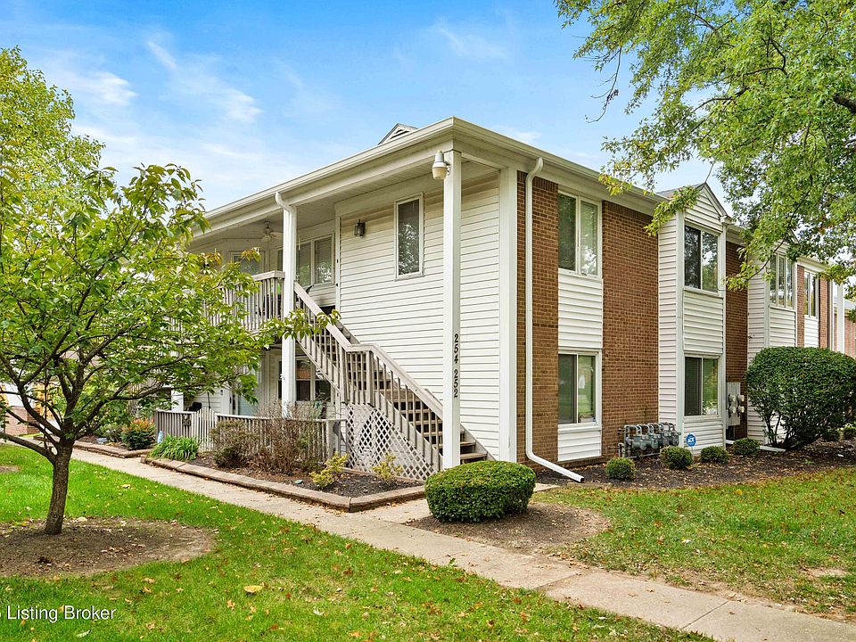 Come home & relax w/ low-maintenance living in a great location in this first floor condo in Shelby Pointe. Enjoy a spacious 2 bedroom, 2 bath open floor plan w/ LVP flooring & a clean, modern vibe. The inviting living room has a warm fireplace & access to a covered patio for sitting outside & enjoying fresh air. Your kitchen has an island for extra seating, white cabinetry & stainless appliances, as well as loads of room for a serving buffet. Next to the kitchen is a formal dining room, perfect for entertaining dinner guests. Your large primary bedroom provides extra room for a king-sized bed & multiple dressers. Through a sliding barn door, your ensuite bathroom has a separate vanity w/ walk-in closet & shower/tub. The second bedroom is spacious & has convenient access to the second bathroom, Jack & Jill style. Additional features include 2 reserved parking spaces w/ attic storage above the carport. The AC is newer, replaced in 2023. The monthly HOA fee covers water, sewer, trash removal, snow removal, exterior maintenance, groundskeeping, & master insurance. Owners only pay for personal electric/gas & internet. You are just minutes from Middletown, Jeffersontown, St. Matthews, Anchorage, & Springhurst and not far from access to I-64 and The Watterson. Don't miss out, schedule a showing today!
