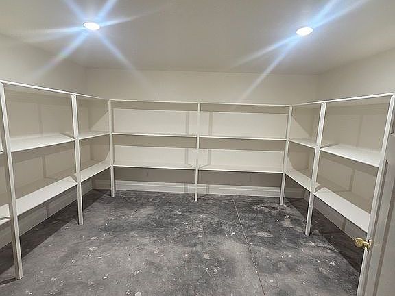 Large storage room with built in shelves