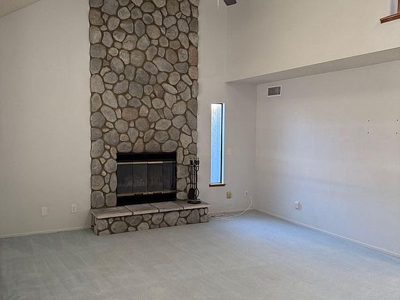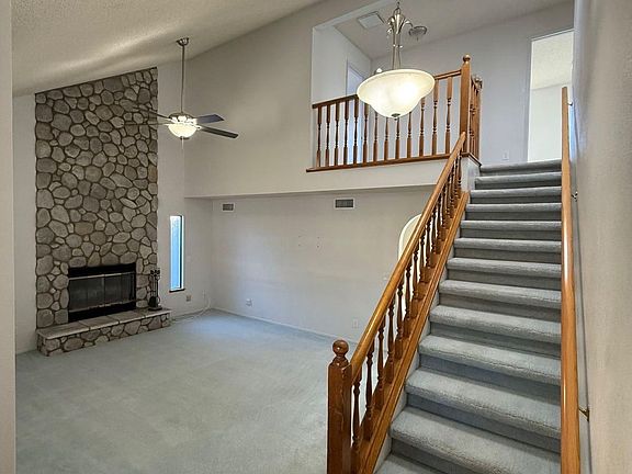 Elegant Ridgecrest Home with Peaceful Outdoor Space. Beautiful two-story home with great outdoor space! This 4-bedroom, 2-bath property features two master suites, one upstairs and one downstairs, tall, soaring ceilings in the living room and a stunning stone fireplace that runs all the way to the ceiling. The spacious primary bedroom includes its own private balcony, perfect for morning coffee, while a second small balcony off the hall bedroom adds extra charm. The backyard is a true highlight-lush grass, mature trees, and plenty of space to relax or entertain. A wonderful combination of character, comfort, and outdoor beauty. Seller is offering a $3,000 flooring allowance! Pick out your own new flooring! Tons of storage in outdoor sheds!