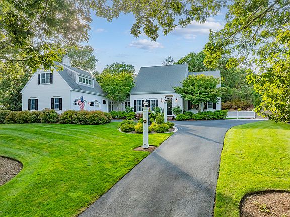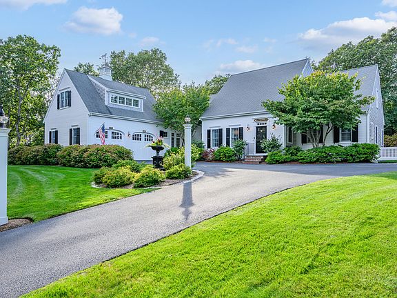 Catch the breezes atop Great Hill in this centrally located classic Cape with deeded rights to Lovers Lake. Updated with flair, this 8-room home offers 3275 sq ft. of living space & is perfectly nestled on a professionally landscaped lot. The home has a great floor plan that will surprise and delight you with unique & pizazz-y features. Whether year-round, or summer living, this beautifully designed floor plan accommodates any lifestyle. The great room, with a gas FP is an open plan with a vaulted ceiling. Gatherings are easy and flow well into adjacent spaces, including the formal DR, a good-sized butler's pantry, LR, and powder room. Also on the 1st FL is the primary bedroom and bath. Two different sets of stairs lead to 3 upstairs rooms and 2 additional bathrooms for flexible living space and work-from-home options.. Attached 2-car garage with mini split, OS, and irrigation. Many fine improvements make this a charming, bespoke home move-in ready!