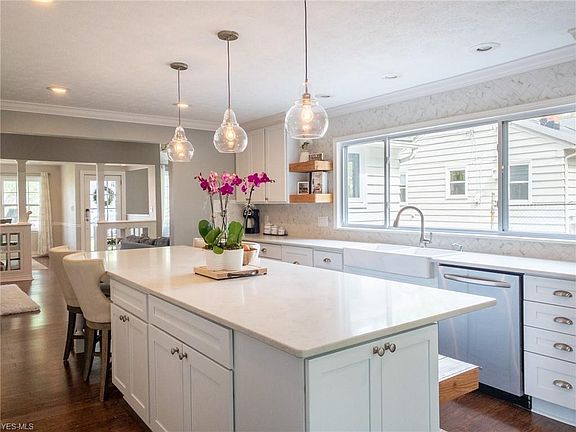 Ideal ranch home situated on sidewalk lined street less than half a mile from Main St in quaint Village of Chagrin Falls. This three bedroom, two full bath UPDATED home boasts all new (2025) flooring throughout & open concept living spaces. As you enter the home, you will appreciate the character & attention to detail in the updated great room w/the vaulted shiplap ceilings, crown molding throughout, gas fireplace & custom built-ins. Look forward to entertaining in the spacious dining room with large picture windows creating natural lighting to cascade in and newer chandelier lighting. The completely updated (2018) kitchen has ample space for prep work on the expansive quartz counters and abundant storage in the Kraftsmaid soft close cabinets! Enjoy center island seating for six, easy clean up in the farmhouse sink & stainless steel appliances. Master bedroom features custom closet system, transom window, and newly remodeled (2020) master bathroom w/spa walk-in shower, new vanity, & updated plumbing. Two additional bedrooms w/updated additional full bath complete the first floor. The unfinished basement has a laundry area and offers good storage space. The slider off the kitchen leads to the rear screened-in porch to entertain or relax outdoors. Retreat to the fully fenced backyard to play ball, cornhole, etc. Welcome home!