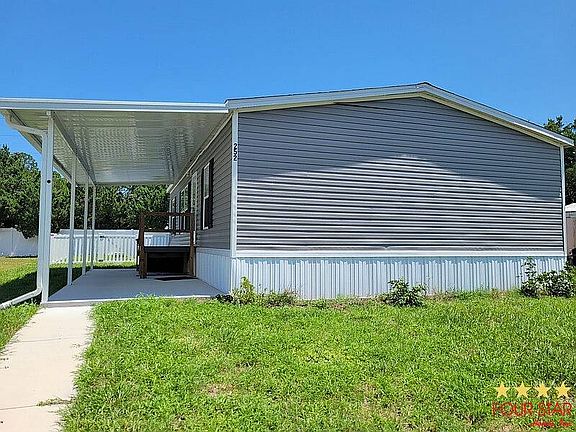 Welcome to this like new 2023 split floor plan home offering 3 spacious bedrooms and 2 full bathrooms. Step inside to find durable and stylish vinyl plank flooring throughout and a bright, open concept living and dining area that is perfect for entertaining or relaxing with family. The kitchen features modern cabinetry, plenty of counter space, and comes fully furnished with appliances, making it truly move in ready. The guest wing includes two bedrooms and a full bathroom with a separate shower soaking tub, ideal for family or overnight guests. The large primary ensuite offers comfort and privacy with a step in shower, generous vanity space, and a walk in closet. A separate laundry room provides added convenience and extra storage. Outdoors, you will love the fully fenced backyard that gives you both privacy and a safe space for pets to roam in this pet friendly community. The double driveway provides plenty of parking, and there is potential to add a screened in porch on the side of the home to enjoy Floridas sunshine year round. Parkwood Family Park is a welcoming community, close to shopping, dining, medical facilities, and local attractions, offering both comfort and convenience. Do not miss the opportunity to own this move in ready home. Call today to schedule your private showing.