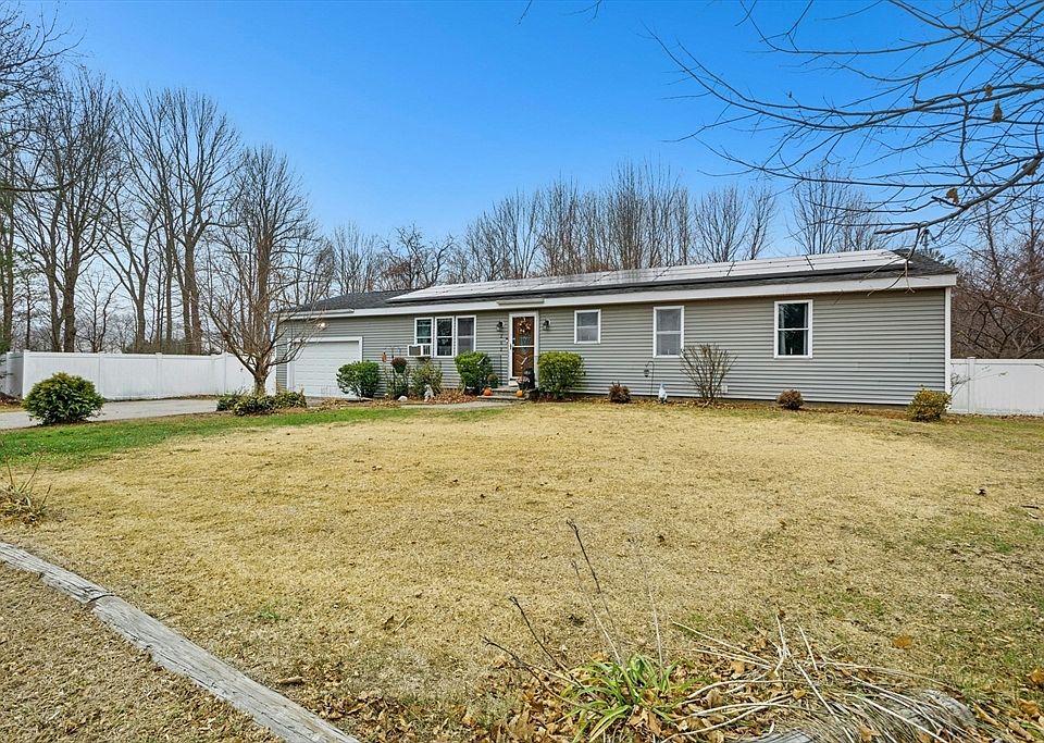 Beautiful single-level living in the heart of Rutland. Perfect for first-time buyers or those looking to downsize, this open and airy 3-bedroom, 2-bath ranch is truly turnkey. Features include an open floor plan with vaulted ceilings, hardwood floors, and a primary suite with walk-in closet and ensuite bath. Enjoy an oversized attached garage and a fenced corner lot offering privacy (lot totals 0.75 acres), vinyl siding, architectural roof, and a large, paved driveway. The basement provides excellent storage and potential to finish. Updates include a new heating system (2025), reverse osmosis filtration, solar panels (2025), and a newer washer/dryer that will convey. This move-in ready home is waiting for you—don’t miss it!