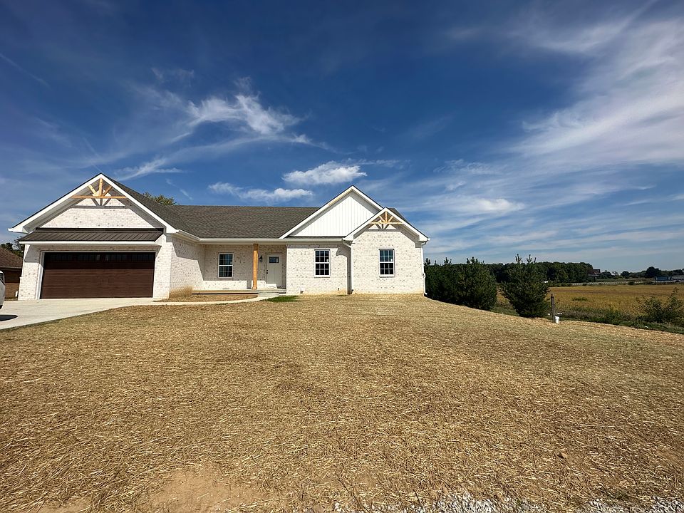 This new construction home is being built by Ratcliff Inc. and will feature the Lilly floor plan. This brick ranch home will be a 3-bedroom home with a dedicated office and 2 full bathrooms. The home will have an attached 2 car garage, and a covered back patio. The open concept floorplan opens to a living area with vinyl plank flooring that overlooks the kitchen and dining room combination. The white kitchen will feature granite countertops and stainless-steel appliances and pendant lighting over the bar area. The home has a split floor plan with a spacious master suite with a his and hers closet and an En Suite bathroom. On the other side of the home is 2 other bedrooms and a full bathroom in the middle. Home will be completed in 4-6 weeks