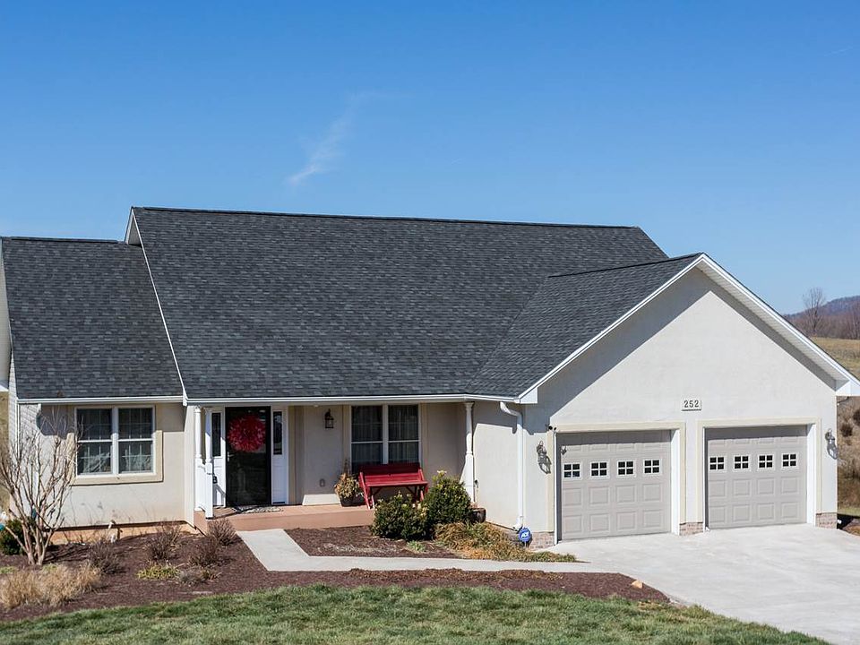 Beautifully-done contemporary! Lovely open floor plan greets you with vaulted ceilings & wood floors! Kitchen offers attractive granite counters, oak cabinets, breakfast bar & eat-in area! Spacious dining & living room areas! Master suite offers vaulted ceiling and attached bath with tile shower & contemporary twin sinks/vanities! Two additional main level bedrooms, as well as a full hall bath. Charming spiral staircase leads you down to the terrace level with tons of bonuses, including a bar/game room area, sitting area, media room, home office, additional bedroom and a 3rd full bath! Enjoy incredible year-round views from the rear deck, and enjoy the pool! Double attached garage & storage shed for all you storage needs! Unbeatable value!