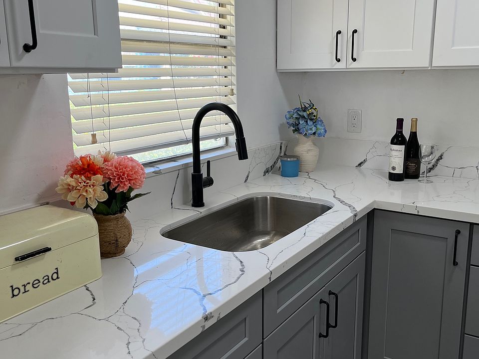 New window acGood sized bedroomNew paintBrand new flooringWalk in closetWalk in utility closetBrand new quartz countertop
