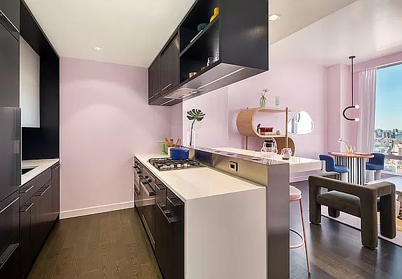 Virtual Tours of One Manhattan Square residences are available as well as limited in-person showings, strictly by appointment only. ONE MANHATTAN SQUARE OFFERS ONE OF THE LAST 20-YEAR TAX ABATEMENTS AVAILABLE IN NEW YORK CITY Residence 12K is a 695 square foot one bedroom, one bathroom with an open gourmet kitchen and breakfast bar. This spacious residence faces North East, and overlooks expansive, lush gardens and city skyline. Warm, modern interiors are brought to life by the renowned design team at Meyer Davis Studio. This residence features imported stone and custom finishes, premium Miele appliance package, 5" wide stained oak flooring, master bath with custom wood cabinetry, marble tile walls and mosaic floors with radiant heat, under-mount Wetstyle sink with glass vanity top and Dornbracht polished chrome faucets and a washer and dryer. New York's premier development company Extell, has collaborated with a team of world-class talent to create an icon that reflects the quality, choice and excellence that distinguish Extell properties- One Manhattan Square. Perfectly situated along the Lower East Side Waterfront, this 800-foot-tall striking glass tower offers one to three-bedroom condominium residences that feature epic river and skyline views and a lifestyle enhanced by over 100,000 square feet of indoor and outdoor amenities. One Manhattan Square presents the most valuable waterfront living opportunity in Manhattan with one of the last available 20-year tax abatement in New York City. Meyer Davis, the award-winning studio behind world-class hotels, elite private homes and flagship retail boutiques, has designed residences that rival five-star resorts. Each residence has been meticulously planned with gracious layouts, custom finishes and the most dynamic views. Residents can revel in the over 100,000 square feet of resort-like amenities that span three full floors of the tower and over 1-acre of private outdoor gardens. It all thrives on the Lower East Side. The transforming neighborhood is buzzing with energy and is within proximity of a number of landmarks including the South Street Seaport, Manhattan Bridge, and the East River Esplanade. One Manhattan Square was designed to appeal to those that want it all; iconic views, lush gardens, gorgeous homes, and an unprecedented package of services and amenities. IMMEDIATE OCCUPANCY SERVICES AND AMENITIES INCLUDE: Private motor court 24-Hour doorman and concierge White-glove services include package delivery, refrigerated storage, dry cleaning valet, and complimentary bicycle storage. Hammam with cold plunge pool 75' Saltwater indoor swimming pool Children's wading pool Spa treatment rooms Hot tub Sauna Full basketball court Two-lane bowling alley Squash court Golf simulator 42 Person movie theater and performance space Cellar bar and lounge Coworking space Wine storage and tasting room Cigar room Culinary lounge and demonstration kitchen Business center Game room Indoor children's playroom State-of-the-art weight room & cardio rooms Separate spin, yoga, Pilates and dance studios On-site parking garage available Pet spa, laundry, and alterations facilities Private storage available One Acre of Private Outdoor Amenities and Gardens include: Sumac meander Birch garden Social courtyards and relaxation lawns Fire pits Outdoor grills and dining Herb garden Treehouse Children's playground Tea pavilion Outdoor ping-pong Putting green Stargazing observatory 93' Covered dog run Managed by Extell Management Services