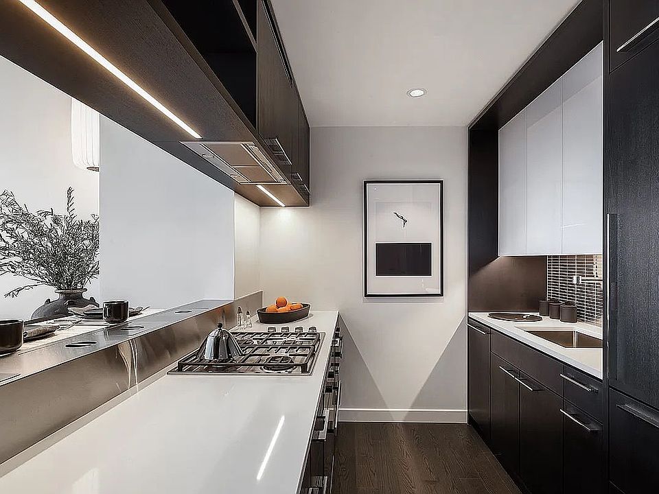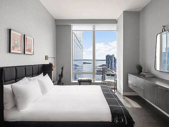 Residence 59L is a beautifully designed 709 SF one-bedroom, one-bath home featuring an open gourmet kitchen with breakfast bar and premium Miele appliances. Facing southwest, this bright and spacious residence offers breathtaking sunset views over New York Harbor and the Downtown skyline. Interiors by the award-winning Meyer Davis Studio showcase custom finishes, 5” wide oak flooring, a marble-clad bathroom with radiant heated floors, and an in-unit washer/dryer.