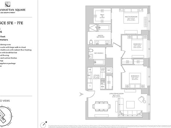 Residence 67E is a three bedroom, two bathroom with an open gourmet kitchen and breakfast bar. This spacious corner residence faces Northeast with expansive Midtown, East Rivers, and iconic Empire State views. Warm, modern interiors are brought to life by the renowned design team at Meyer Davis Studio. This residence features imported stone and custom finishes, premium Miele appliance package, 5 wide stained oak flooring, master bath with custom wood cabinetry, marble tile walls and mosaic floors with radiant heat, under-mount Wetstyle sink with glass vanity top and Dornbracht polished chrome faucets and a washer and dryer.
