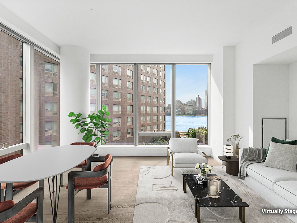 Welcome to Residence 7H, an expansive 1,156 sq ft corner home that redefines luxury downtown living. This beautifully designed two bedroom, two bathroom home offers stunning Northeast and Southeast exposures, showcasing panoramic views of the East River and the Manhattan Bridge through soaring 10-foot ceilings and oversized floor-to-ceiling windows that invite natural light all day.