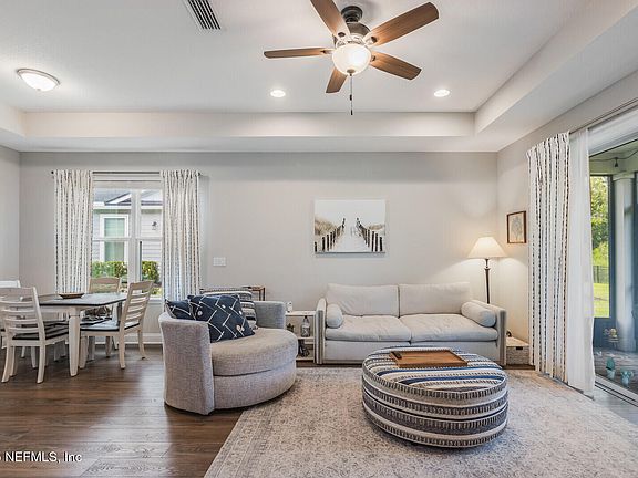 Welcome to 252 Tamar Ct in St Augustine, Florida. This well maintained townhome in the Beacon Lake Community features 3 Bedrooms, 2 full bathrooms with split floorplan. Upgraded LVP flooring, upgraded kitchen with gas cooktop, quartz countertops, stunning tile backsplash, cabinets with crown molding, updated lighting and fans. This end unit has lots of natural light and windows as well as beautiful view of the peaceful preserve. Enjoy the indoor/outdoor space with the hide-away sliding glass doors. Covered, screen lanai make this home comfortable and easy to live in. Close proximity to shopping, restaurants, and the beach.