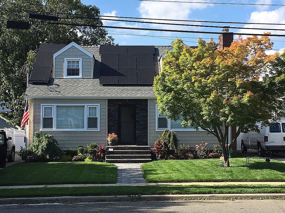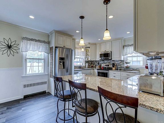 Lots of room in this recently renovated, expanded and rear dormered Cape in Merrick's school district 25. Brand new bathroom and kitchen with granite countertops and ceramic tile floor. Family room has vaulted ceiling with tons of windows and a sliding patio door that leads to recently installed pavers. Huge master bedroom en suite with large walk in closet and space for an office. Newer roof on garage and rear of house with solar panels on front. 200 amp service. Basement is finished with its own OSE and wet bar. Living/Dining room has a highly efficient, 1 year old wood stove fireplace that can keep the house warm on a chilly night. 5 Minutes from LIRR and less than 10 minutes to 3 different beaches. This is the one you have been waiting for!
