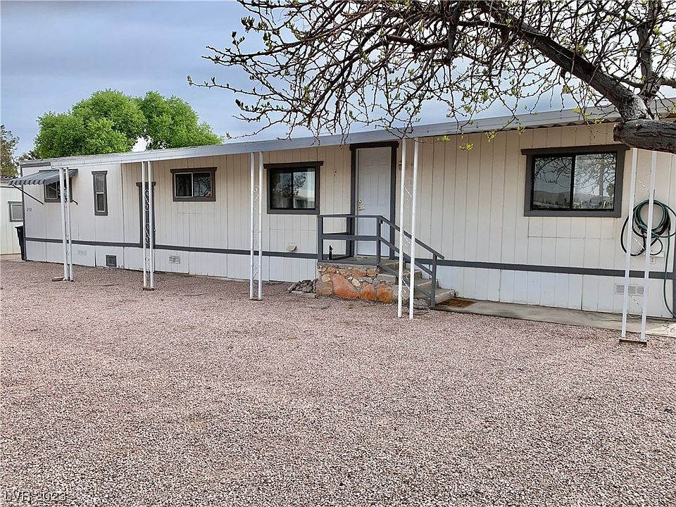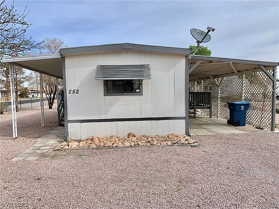 This 840 sq ft manufactured home on 0.24 acres has 2 bedrooms and 1 1/2 baths. New Carpet, New Curtains and New flooring throughout. Very clean inside and out. Sparkling clean kitchen, New stove and New refrigerator. Kitchen window providing the natural light every cook wants. Cozy living area, all furniture included. RV Parking with pull thru, for easy exit. Room for your boat too! Separate oversized 1 car garage, insulated, work bench / storage area. Mature Shade Trees. Near Lake Mead Recreational Area, Las Vegas, Valley of Fire and Mesquite.
