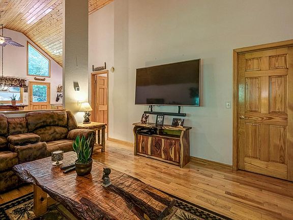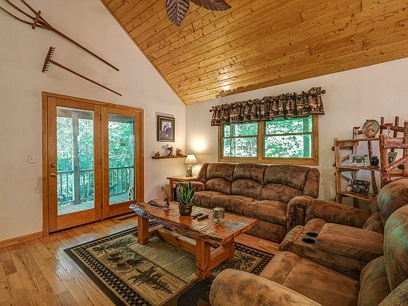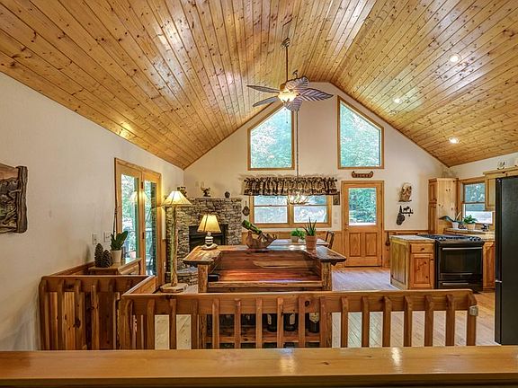 THIS SPECTACULAR, CREEKSIDE, FULLY FURNISHED HOME IS WAITING FOR YOU! Just minutes to town, yet privacy and serenity reign here. Inside is your Great Room with a wood vaulted ceiling, wood flooring, a fireplace to warm the chilly mountain evenings, and French door access to your creekside deck. You'll love preparing meals in this spacious kitchen with tile counter & backsplash, black SS appliances, gas range, plenty of cabinets for storage, and a HUGE pantry, all next to your dining area. A full bathroom completes the main floor. On the second level is the Master Bedroom with a stone fireplace, laundry, and bathroom with an upgraded walk-in shower. Relax in your Hot Tub on the lower deck or lounge on the upper deck as you listen to the waterfall spill into the creek. ABSOLUTELY PERFECT!
