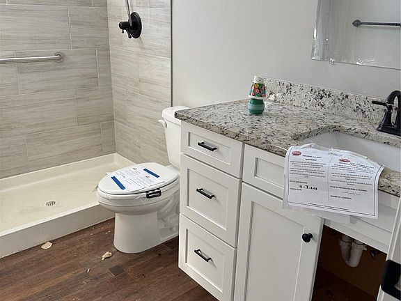 One level livingTiled walk in showerPretty white kitchenNice level lotStainless appliances