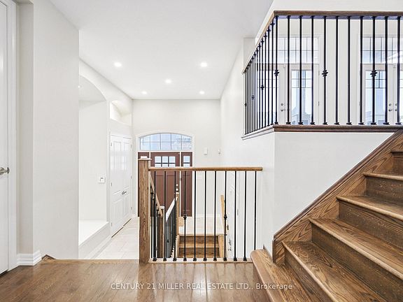 Welcome to this beautifully maintained family home located in Oakvilles highly sought-after Glenorchy community. Featuring a spacious open-concept design, this home offers hardwood flooring throughout, upgraded light fixtures, pot lights, and California shutters for a clean, modern aesthetic. The main level includes a formal dining room, a cozy family room with a gas fireplace, and a contemporary kitchen with two-tone cabinetry, quartz countertops, stainless steel appliances, an island with breakfast bar, stylish backsplash, and direct walkout to a fully fenced backyard from the breakfast area. A separate great room adds extra living space and features dual garden doors that lead to a private balcony. Upstairs, the primary suite boasts a large walk-in closet and a spa-inspired ensuite with double sinks, a glass shower, a freestanding soaker tub, and a private water closet. Three additional bedrooms and two 4-piece bathrooms provide ample space for family and guests. Additional highlights include wood stairs with wrought iron spindles, main floor powder room and laundry, and a double car garage with inside entry. Conveniently located near top-rated schools, parks, recreation centres, shopping, transit, and major highwaysthis home is the perfect fit for a growing family.