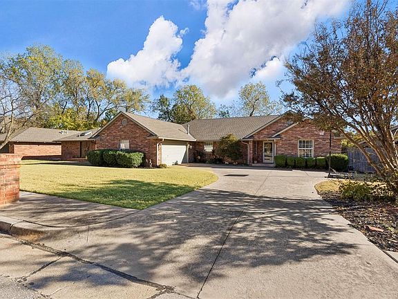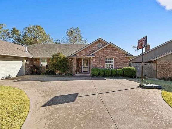 Welcome to Trails North ~ one of Edmond’s well-established neighborhoods. Step inside this Scott Coleman build & you’ll immediately notice the unique architectural detail of the curved, 9-foot ceiling rafters & the open, flowing layout. The living room is generously sized with a fireplace, built-ins, multiple seating areas & a full wall of windows/doors overlooking the backyard. The sweeping curved ceiling design carries throughout the entire main living zone, connecting the living room, large second dining or sitting area behind it & the spacious kitchen with its center island, raised bar seating, built-in stove & range, and excellent counter space. Just off this main area is a separate formal dining room..slightly set apart yet still benefiting from the open, connected feel of the floor plan. This layout is unlike anything you typically see and offers exceptional natural light & versatility. The primary suite is spacious & filled with natural light, offering a comfortable retreat. Just off the bedroom is a adjoining room, making it an ideal flex space for a study, nursery, TV lounge, sitting room, or hobby area. The built-ins and shiplap wall create a warm, functional feel, & the separation from the main living areas provides added privacy. The primary bath features a jetted tub, double vanities & a spacious walk-in closet. 2 additional bedrooms each have their own en-suite bathrooms ~ rare to find 3 full baths in this price point. A large laundry room with sink completes the interior. The backyard offers a wooded view, a comfortable patio & room to enjoy gatherings with family & friends. Located on a quiet street with cul-de-sacs on both ends, this home benefits from limited drive-through traffic. Garage workspace, irrigation system & more. In the heart of Edmond, with quick access to top-rated schools, shopping, dining & major conveniences. Enjoy neighborhood trails, a pond, and a playground. Well cared for & thoughtfully designed, this home is truly stand out!
