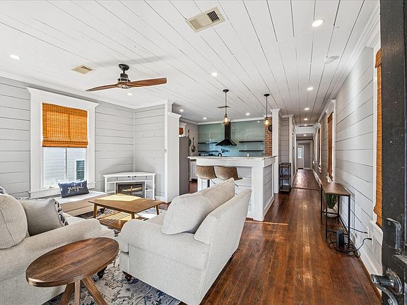 Charming 2BR/2BA coastal cottage with 1,020 sq ft of thoughtfully designed space. Original hardwood floors flow throughout, leading to a beautiful kitchen with butcher block countertops, marble bar, and stainless steel appliances. Exposed brick adds authentic character. Both bathrooms now feature new tile, creating a fresh, modern look. The primary bathroom shower has been completely rebuilt for a spa-like experience right at home. The entire house was repainted in 2023, offering a clean, move-in ready feel the moment you walk in. Located one block from Galveston's prestigious Silk-Stocking District with front-row access to Mardi Gras parades. The wood deck patio and fenced backyard provide the perfect space for outdoor entertaining or just enjoying the Gulf breeze. Ideal as a vacation retreat, investment property, or year-round residence with authentic Galveston charm and modern comfort in an unbeatable location.