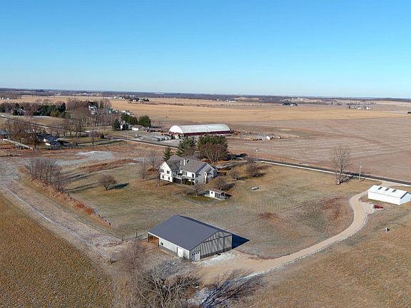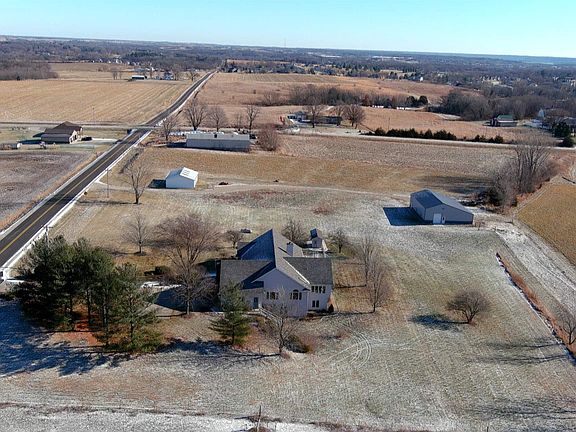 Welcome home to this custom built prestigious home sitting on appx. 12+ acres within minutes from the City of Muscatine, Iowa on a paved road. This home is a MUST SEE! This home has 6 bedrooms, 6 bathrooms, a 3 car attached garage, additional 3 car detached garage, main floor spacious laundry/mud room and a 50' x 63' pole building! The open concept main level boasts hardwood flooring throughout most of the main floor, a master bedroom with master bath and walk-in closet with separate access to composite deck. There is an additional room that is currently being used as an office that could be converted to another bedroom. The main floor living room has a beautiful view of the south fields and neighboring pond with direct access to the large composite deck. The main floor also has a formal dining area and breathtaking kitchen with cherry cabinets, granite counter tops, a large island, breakfast bar, large pantry and a double oven. There is also a double-sided gas fireplace between the main living area and kitchen. Through the kitchen on the main level you will find a separate suite/apartment with vaulted ceilings that includes a living room, dining room, full kitchen and full bathroom. This bonus living space also has separate access from outside of the home which could be used for additional family members, guests, adult children, or income producing rental.