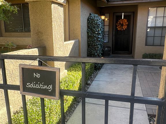 Spacious 3 bedrooms, 2 baths home with attached 2 cars garage. Charming courtyard entrance. Large eat-in kitchen with ample cabinet space, granite countertops and complete with refrigerator, electric range , dishwasher, and microwave hood. Large great room with vaulted ceilings, newer laminate flooring throughout. One bedroom can be used as an office. Inside laundry area. Expansive primary suite with private bathroom featuring double sink vanity, jetted bathtub, stall shower and walk in closet. Beautiful, low maintenance yard with side and back covered patios. Large 3 cars driveway. Close walking distance to Orchard Elementary and within a short drive of James Enochs High school. Come see this home and start making your move.