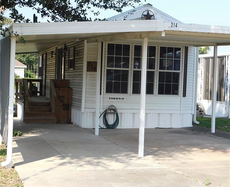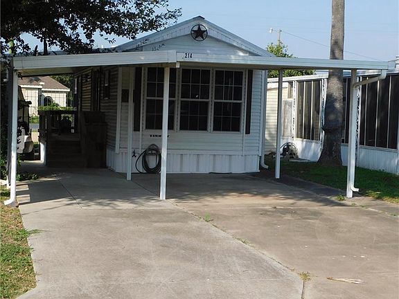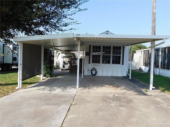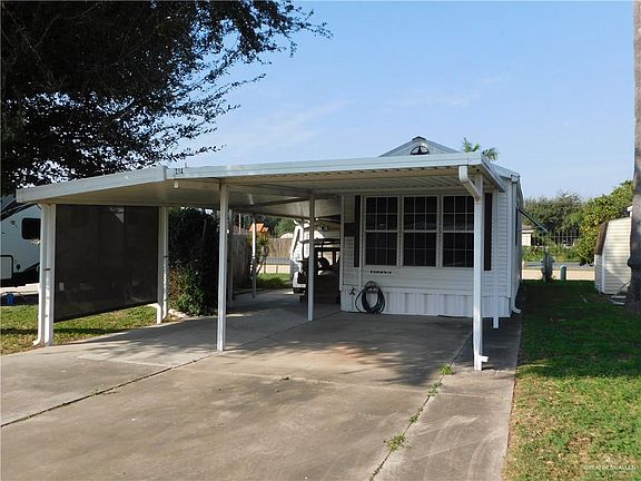 This cozy 1 bedroom 1 bath mobile home is located in a secured 55+ community in Mission, Tx!!! Your new community awaits you with heated pool and hot tub privileges, group activities, outdoor cooking area, and more!!! Get around your new community in a golf cart. Fully furnished with appliances, 2 covered carport and patio spaces and a storage shed for protected storage.