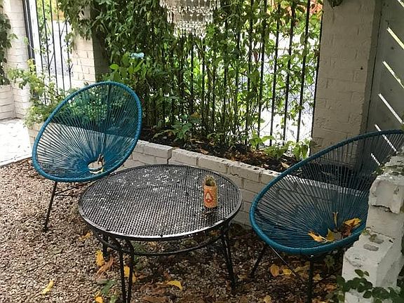 ABP, fully-furnished backhouse ready for immediate move-in. Perfectly located between East 6th Street and the hike and bike trails around Ladybird Lake. The kitchen is fully equipped with pots and pans, gas stove, microwave, and a large farmhouse sink. Recent additions include a new 42" tv, stackable washer and dryer, and remodeled bathroom. Outdoor patio overlooks a rose garden with overgrown trumpet vines and Italian string lights welcoming you home. All bills paid by the owner (water, trash, gas, electricity, internet).