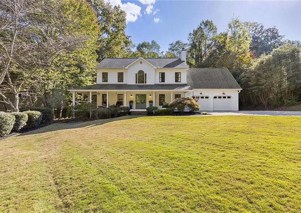 Welcome to this beautifully maintained home in Fairview Estates—a quiet community of just 29 homes. Nestled on a picturesque private lot, this property features a beautifully landscaped front yard and a spacious front porch that invites you to relax and unwind. Inside, you'll find an open-concept floor plan filled with natural light and timeless charm. The main level boasts gleaming hardwood floors, a generous eat-in kitchen complete with a coffee or wine bar, and an oversized laundry/mudroom offering abundant storage. The large family room flows seamlessly into a sunroom with expansive windows overlooking the lush backyard and wooded surroundings. Upstairs, there are four spacious bedrooms plus a versatile flex space—perfect for a home office, gym, or media room. Step outside to enjoy a large, private, fenced backyard designed for entertaining, featuring a fire pit and a deck ideal for gatherings. Conveniently located near parks, Lake Lanier, top-rated schools, shopping, and Northside Forsyth Hospital, with easy access to GA 400 and Hwy 20—this home truly has it all!