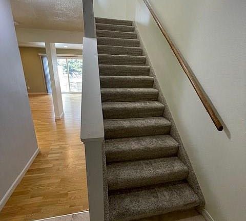 Pride of ownership shows in this spacious, updated townhome! Features wood burning fireplace with travertine tile hearth/mantle, spacious living room with engineered wood laminate and tile floors, modern kitchen with maple cabinets, updated lighting, new sliding glass door with transferrable warranty, newer carpet and paint, central air conditioning, newer furnace, newer water heater, large master bedroom with built-in shelves & walk-in closet, good size secondary bedroom with walk-in closet, finished basement with new LVP wood flooring, newer windows, tons of storage and private bathroom! Lower level family room could serve as third bedroom due to closets and private bathroom. Highly sought after Garden Ranch location...close to Garden Ranch park, shopping and transit!