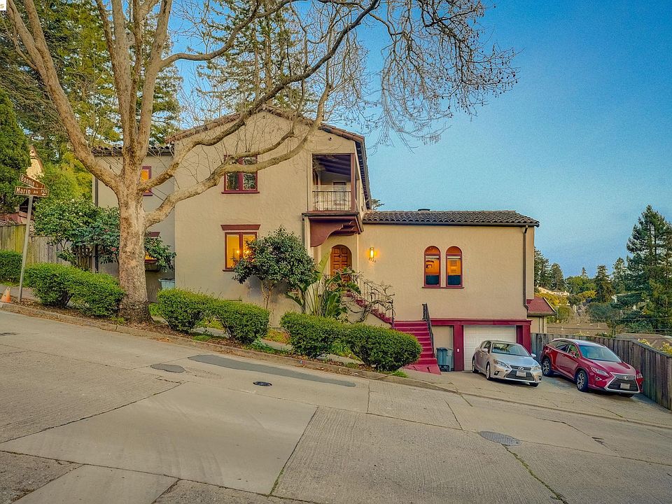 Welcome to your tranquil haven atop Berkeley Hill, where this 4-bedroom, 3-bathroom residence offers more than just a home—it provides a lifestyle of serene elegance. Boasting panoramic bay views, this meticulously maintained and updated dwelling effortlessly blends charm with modern allure. Upon entry, you're greeted by lofty ceilings adorned with exquisite timber beams, instilling a sense of grandeur. The main living area, featuring a magnificent front picture window framing San Francisco vistas, invites you to unwind by the inviting fireplace. Throughout the home, gleaming hardwood floors exude warmth, guiding you through a carefully curated layout comprising a separate dining room, a sleekly modernized kitchen, and a cozy breakfast nook complete with a built-in sitting bench. Step outside onto the sun-drenched deck and garden, perfect for al fresco gatherings or basking in the California sunshine. The delightful kitchen boasts ample cupboard and granite countertop space, along with stainless steel appliances and gas cooking—ideal for culinary pursuits and entertaining. Retreat to the comfortable bedrooms for a restful night's sleep. Conveniently located near shops/restaurants/schools, and the Berkeley Rose Garden, this residence epitomizes Berkeley Hill living at its finest.