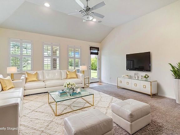 - Breakfast Bar, Ceiling Fan(s), Chandelier, Double Vanity, Electric Dryer Hookup, Entrance Foyer, Granite Counters, High Ceilings, Kitchen Island, Multiple Dining Areas, Open Floorplan, Pantry, Primary Bedroom on Main, Tray Ceiling(s), WD Hookup, Walk-In Closet(s), Washer Hookup