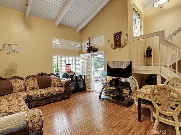 CASH BUYERS ONLY. Submit your offer subject to interior inspection. 2 story home in a gated community. 4 bedrooms 2 baths upstairs and 1 bedroom 1 bath downstairs. Updated kitchen with granite counter tops and tile floor. Spacious dining room with high ceilings and plenty of natural light. Large master bedroom with high ceiling, fireplace and a walk-in closet. Crown moldings, double pane windows and window shutters throughout the home making it energy efficient and looks more elegant. Large back patio is great for gatherings with friends and family. Beyond the comfort of your new home, the community includes a sparkling pool perfect for sunny afternoons and leisurely weekends. The gated entrance provides both security and exclusivity. Great Orange County location with convenient access to the 5 and 55 freeways for a convenient commute. Nearby major employers includling UCI Medical Center, CHOC, and Orange County Global Medical Center. Shopping, dining, and entertainment is also convenient at Main Place Mall, The Outlets at Orange, Honda Center, Angel Stadium, Discovery Cube, and more. This home is on the border of Orange and Tustin and it's on the Orange school district. Minutes to 22, 5 and 55 freeways. Note: this home is on LEASED LAND with a Monthly fee of $1,182. Bedrooms are virtually staged.
