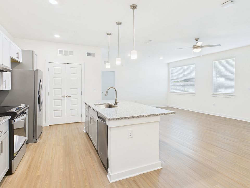 The Meditate two-bedroom on the first floor with easy access! Enjoy your private outdoor space with beautiful views, entertain comfortably in your spacious home. Luxury vinyl plank flooring in the social areas reflects light, brightening your space and enhancing your living experience. Dual primary suites feature plush carpeting, and the second primary includes two closets with full-length built-in mirrors for extra storage. Split-color custom cabinets create a modern, luxurious feel in your chef's kitchen, complete with a built-in recipe desk. A full-sized washer and dryer are included in a designated laundry room for added convenience.