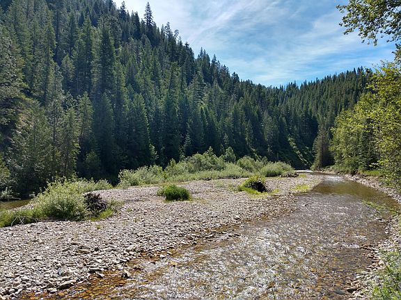 Hurry on this 4.85 acres filled with huge trees and featuring beautiful Pine Creek water frontage. Just outside Pinehurst with public road access , this property includes two temp cabins overlooking the creek plus a creek-side pavilion with stone fireplace. Bring the RV to the circular driveway and level area with permitted septic, well for irrigation, temp building with full bath and laundry. Also includes a big storage shed with loft. This is truly a magical spot! Appointment only, agent must accompany buyers, caretaker on site. CLA