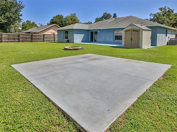 Welcome to this beautifully updated 4-bedroom, 2-bathroom block home in lovely Florida Shores—just minutes from the beach and close to shopping, dining, and other everyday conveniences. Situated on a spacious lot with no HOA, this move-in ready home has been thoughtfully maintained and upgraded for comfort and peace of mind. Major updates include a new roof (2019), A/C replacement (2023), and a brand-new water heater (2025). Step inside to find fresh paint throughout, new baseboards, new interior doors, and a remodeled primary bathroom. The open layout is bright and airy with vaulted ceilings, modern LED ceiling lights, new ceiling fans, and all new appliances, while planter shelves add character and charm. The curb appeal is enhanced by an oversized driveway, offering ample parking for guests, trailers, or other toys. Inside, the living spaces flow effortlessly, perfect for both everyday living and entertaining. The kitchen and living area connect seamlessly to the backyard through sliding doors, expanding your space to the outdoors. Out back, you’ll find a fully fenced yard (installed in 2021) with plenty of room to relax or entertain. Enjoy evenings around the fire pit, make use of the oversized concrete patio for outdoor dining, or store your tools and gear in the dedicated shed. Whether you're seeking a full-time residence, seasonal retreat, or investment property, this home offers comfort, functionality, and coastal convenience—all with no HOA restrictions. Schedule your private showing today!